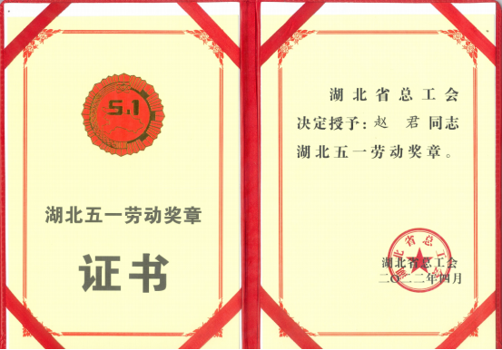 2022年4月,趙君被授予湖北五一勞動獎?wù)?/span>