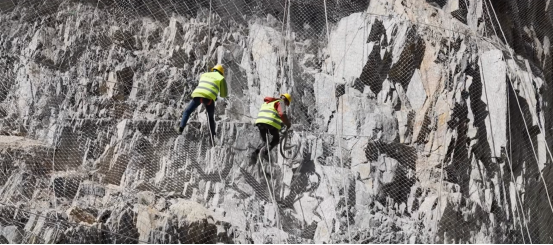 在劃分責(zé)任區(qū)的會議上,是黨員也是項目總工的詹斌主動站了出來,要求承擔(dān)項目全線地質(zhì)條件最為復(fù)雜的哈朗橋段施工管理責(zé)任。由于無施工便道,該段路面拓寬工程只能用人工爆破方式實施,工人們懸掛在幾乎垂直的巖壁上鑿孔爆破,清除松動的巖石,身體力行詮釋了路橋人“逢山開路,遇水架橋”的“鐵軍精神”,如期鑿?fù)诉@“最難十公里”。