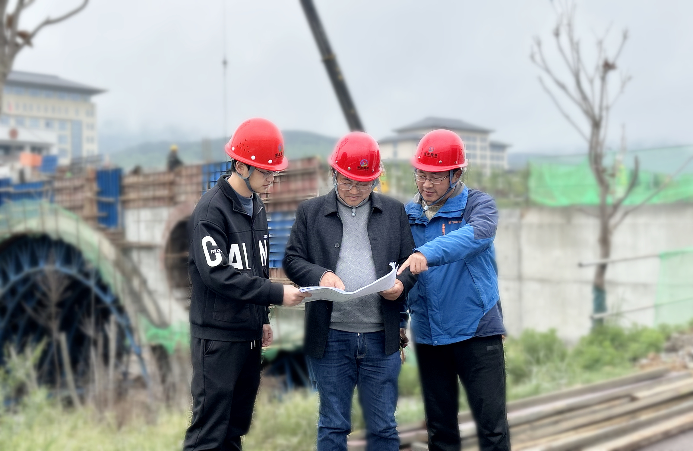圖:堅(jiān)守在項(xiàng)目一線的徐明浩(中)