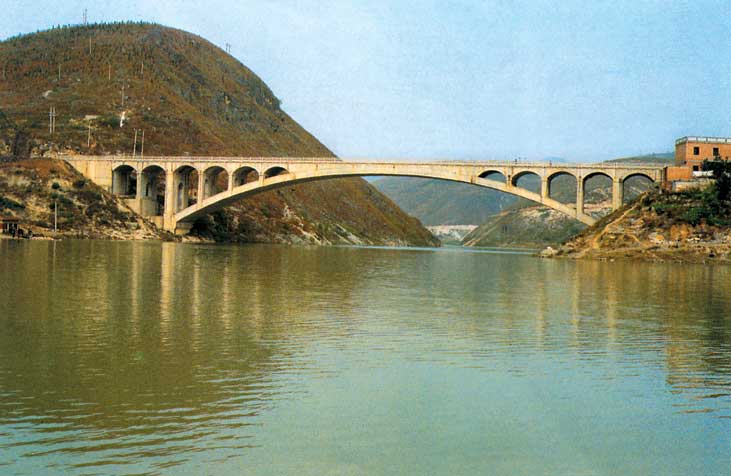 ?該橋是湖北省最大箱型板拱橋。全橋長152.76米,于1984年建成。