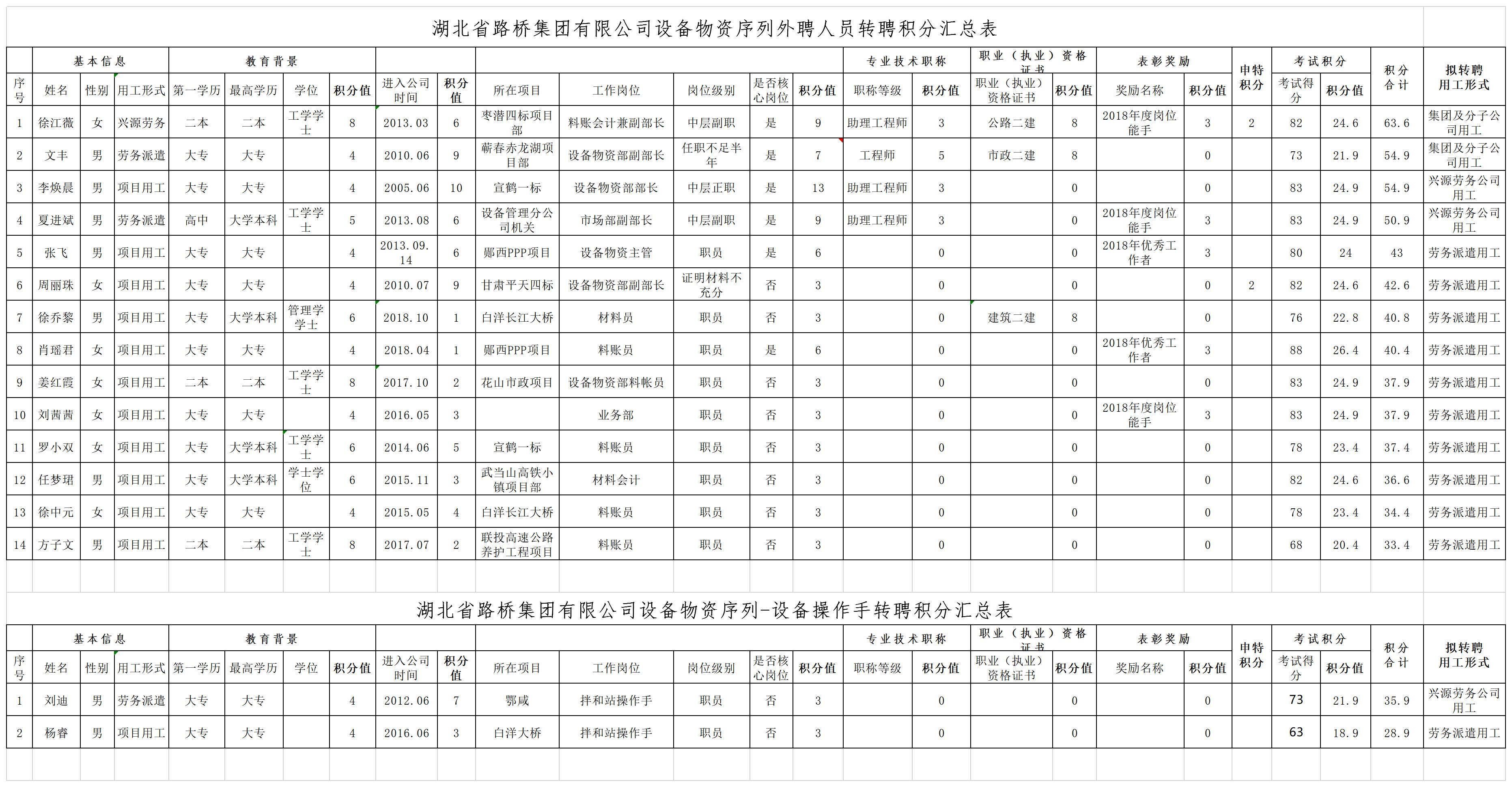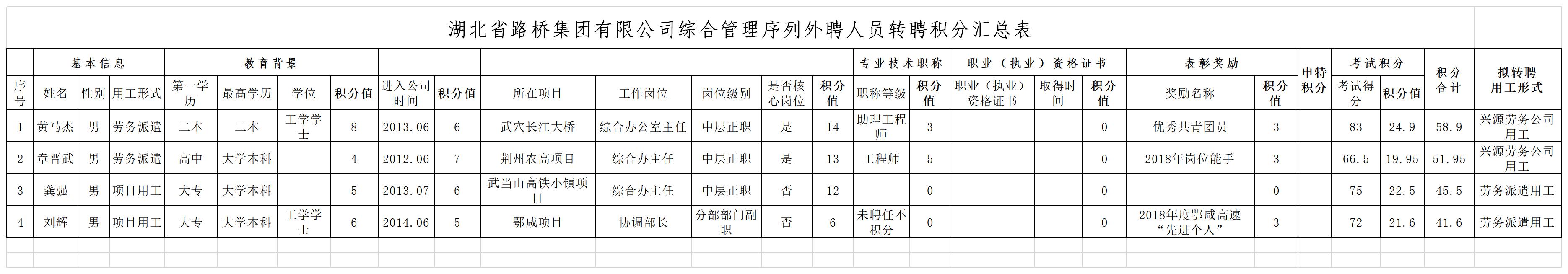 湖北省路橋集團(tuán)有限公司2019年擬轉(zhuǎn)聘人員公示