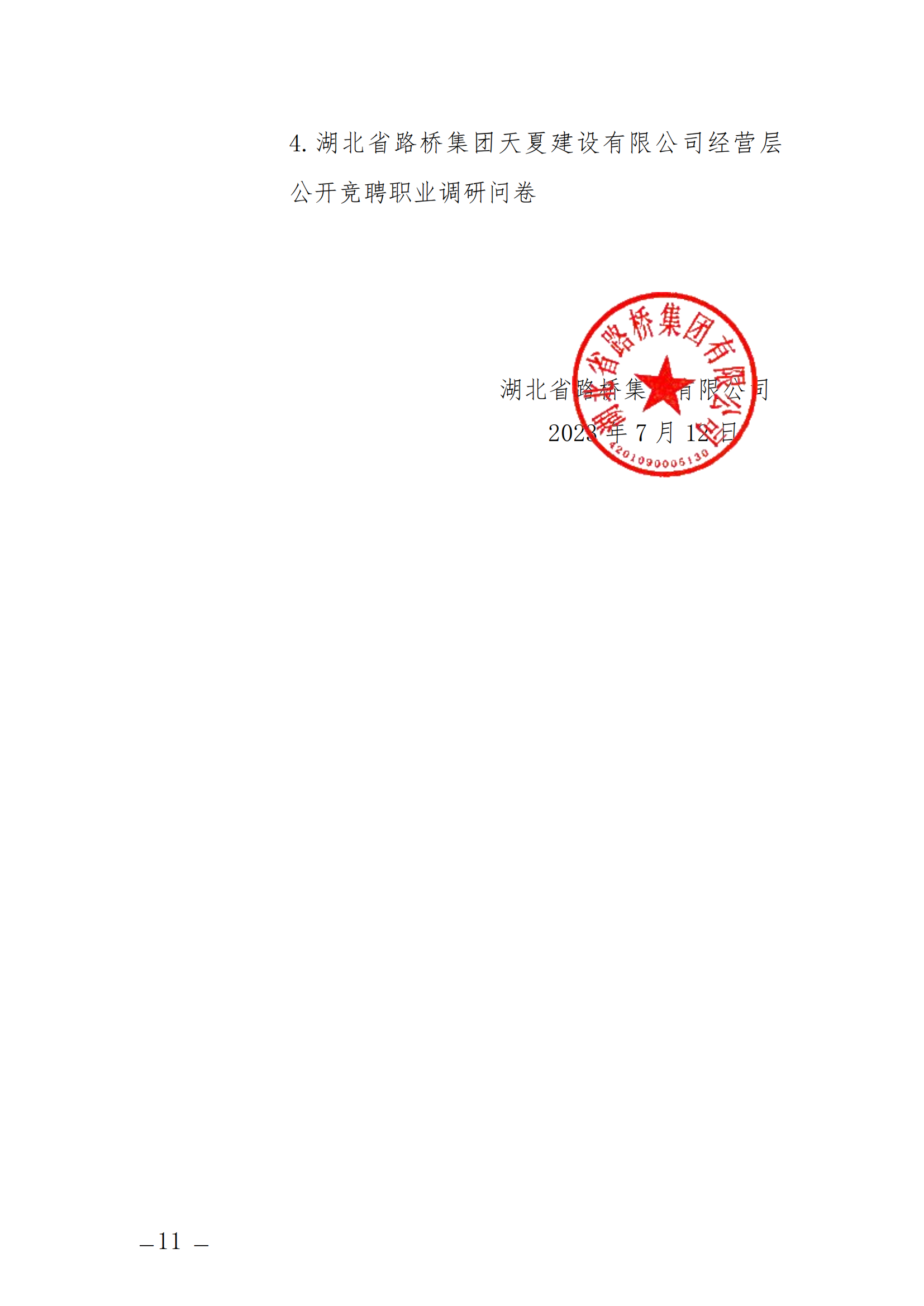 關(guān)于開(kāi)展湖北省路橋集團(tuán)天夏建設(shè)有限公司經(jīng)營(yíng)層團(tuán)隊(duì)公開(kāi)競(jìng)聘的通知