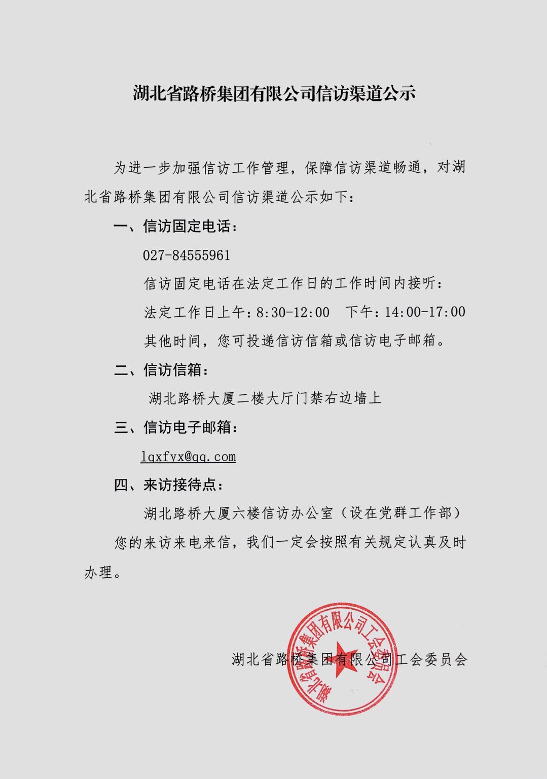湖北省路橋集團(tuán)有限公司信訪渠道公示